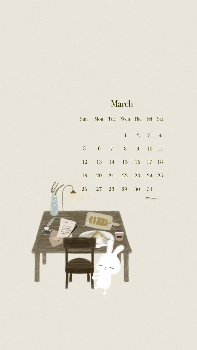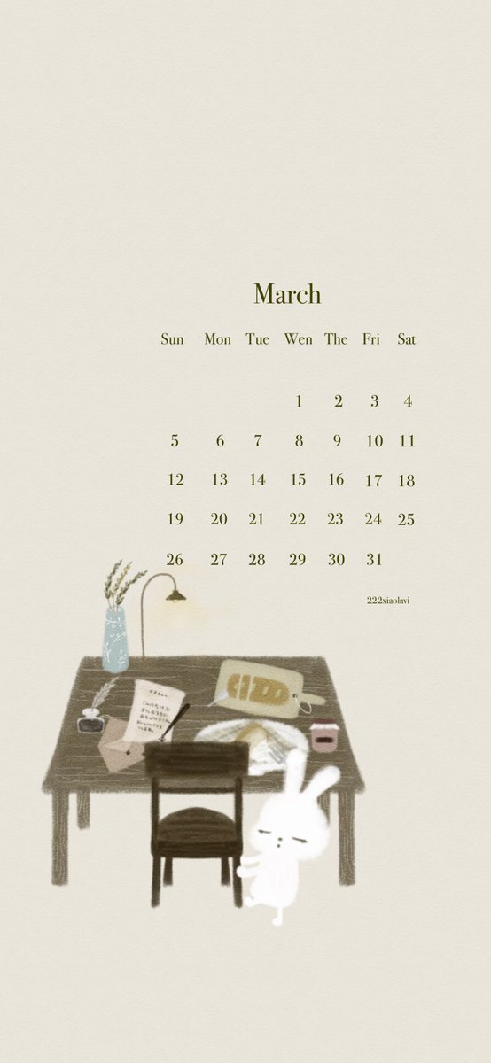 🥖March calendar… 3月のカレンダーを描きました🪑 よろしければ、お好みのサイズに調節してみてくださいね🐰 ・ 【HP】 xiana777.amebaownd.com ・ #xiaolavi #3月のカレンダー #フリーイラスト #壁紙 #ゆるいイラスト #ゆるかわイラスト #ゆる絵 #illustration #絵描きさんと繋がりたい