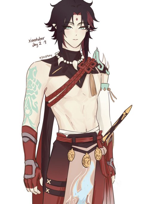 pretty little waiter for day 3 of #xiaotober 😋🍮 #xiao #genshinimpact #原神 #sweetparadise #inktober2021