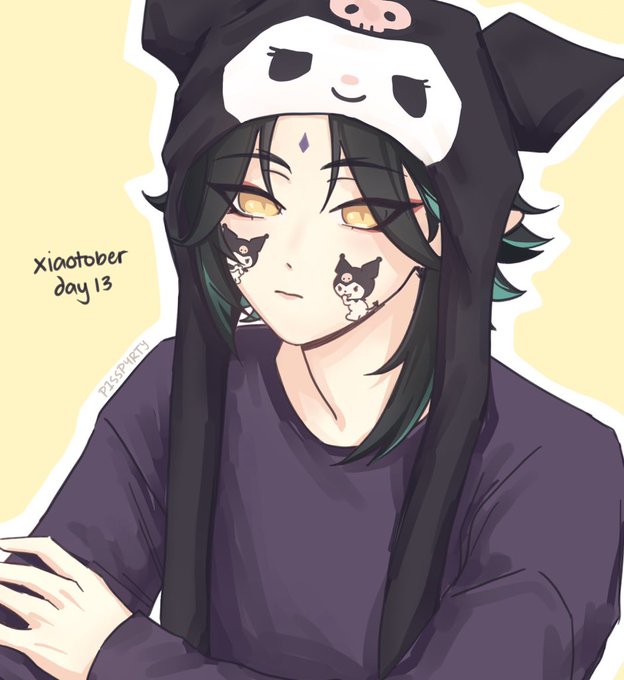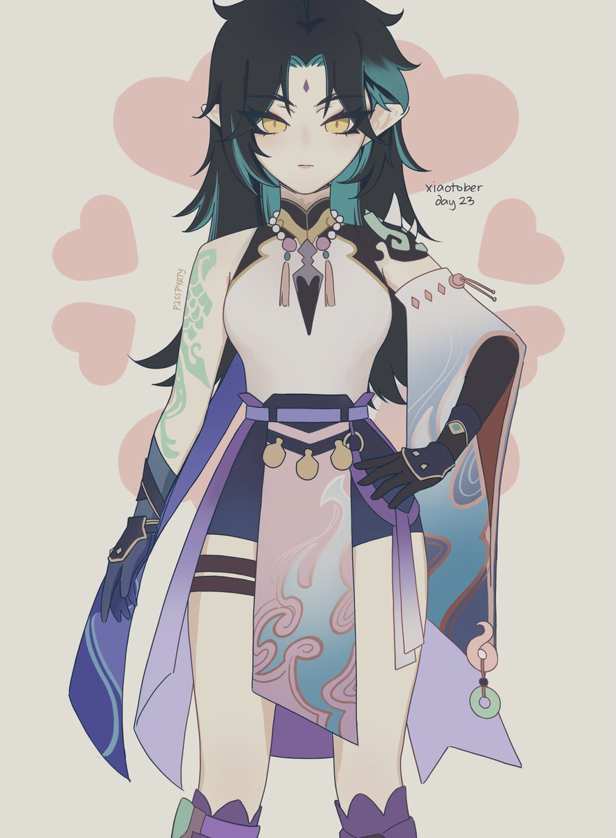 fem/genderbent!xiao again for day 23 of #xiaotober 👩❤️💋👩 #xiao #genshinimpact #原神 #inktober2021