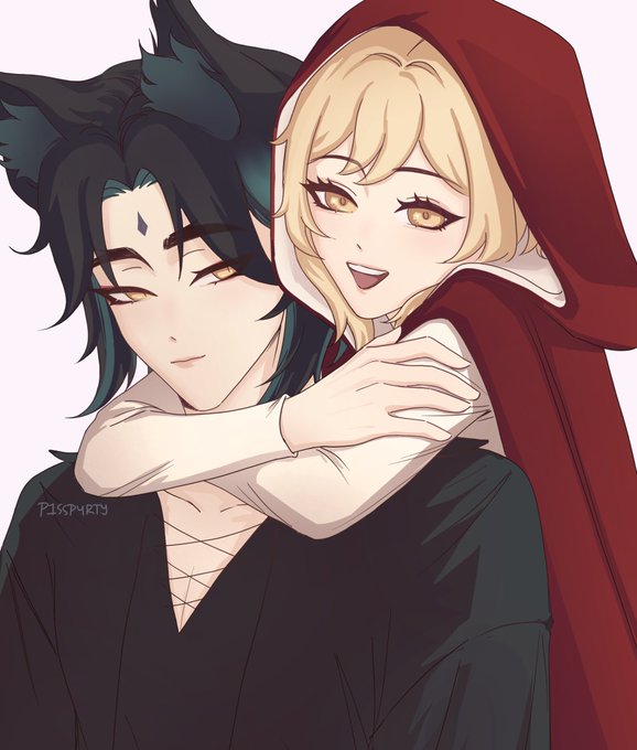 little red riding hood and her big bad wolf<3 happy halloweeny everyone!!!!!!!!!!!!! 🎃٩( ºωº )۶🎃 day 31 of #xiaotober #xiao #lumine #xiaolumi #genshinimpact #原神 #inktober2021