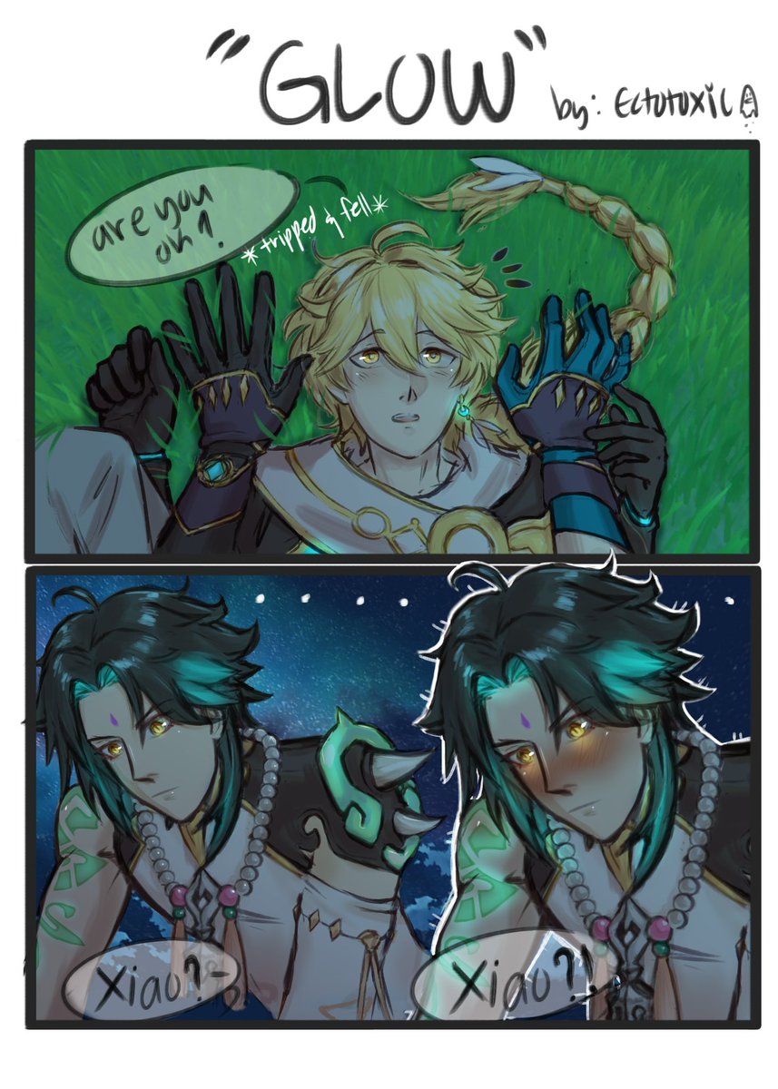 AE: Look what I found, Xiao! XIAO: Is... Is this, the legendary artifact 'Nui's Oath'? (But this can only be found when 2 nuis in love... does this means...) AE: Let's keep it! XIAO: 💘?! . . #原神 #XiaoAether #Xiao #Aether #魈空 #xiaother #xiaoxaether #GenshinImpact #fanart
