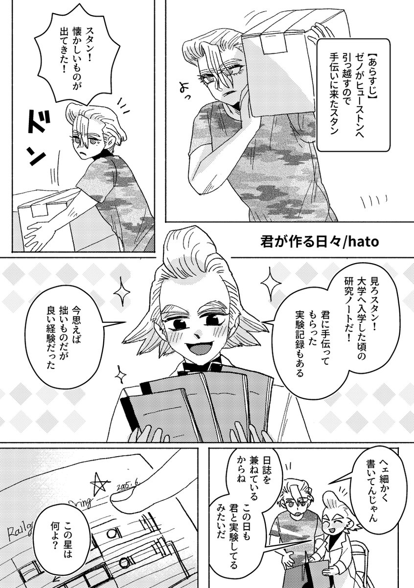 『まだ君に手を出してないなんて、僕も案外奥手なんだね』 未来からやってきたアラフィフのスタがピチピチのゼ丿少年に噛まれるお話。最終話から10年くらい経ってる設定です。※単行本未収録 お題:悪ガキ / Runaway Baby. #ゼノスタ #xnst1week_dw @xnst1week_dw