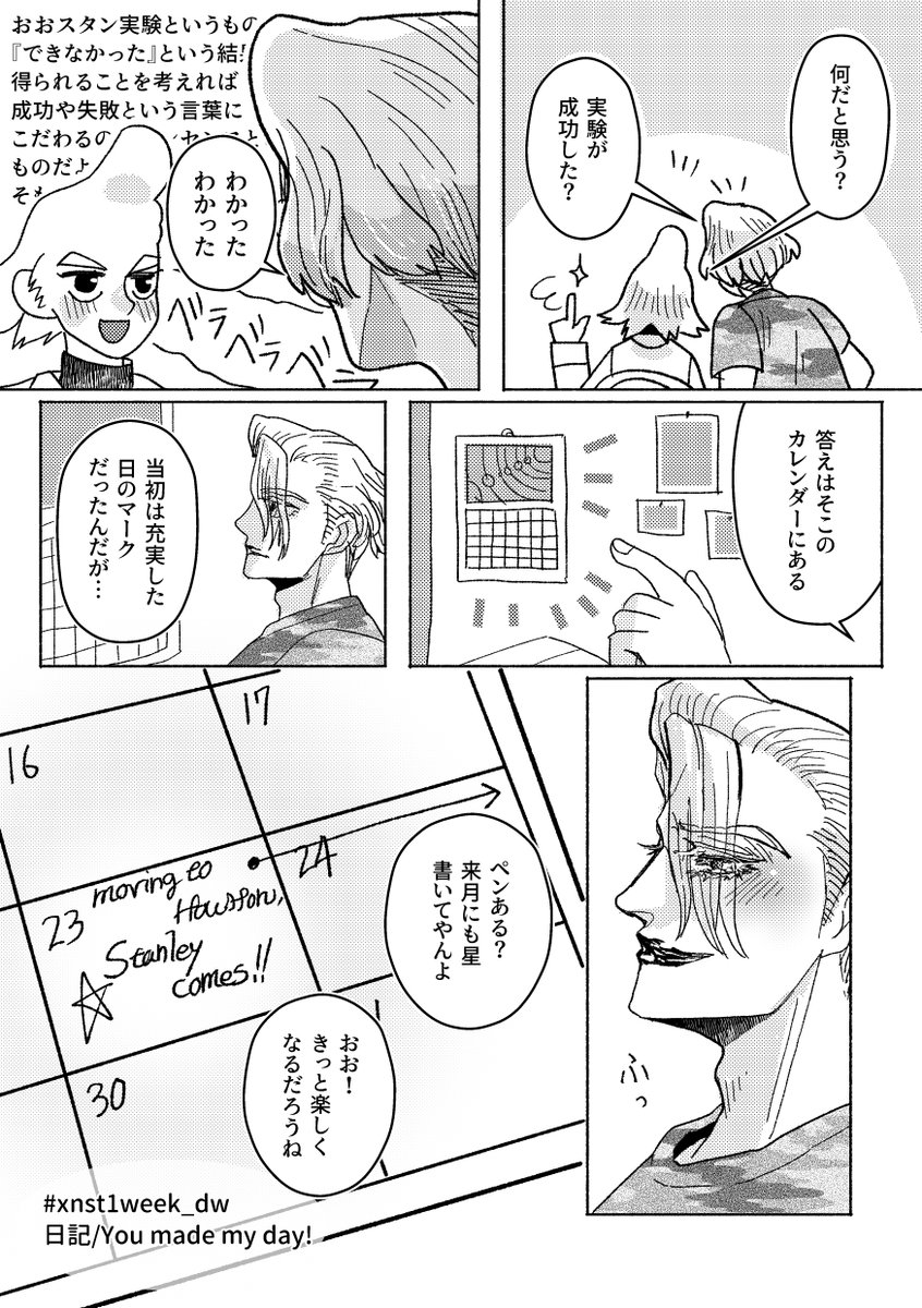 『君が作る日々』 幸せな日に偶々君がいたのではなく、君がいたから幸せだったのなら、未来だって言うまでもないだろう。 遅刻タイムに間に合わなかったガチの遅刻だけどワンドロライ100回おめでとうございました!!🎊 #xnst1week_dw @xnst1week_dw 日記/You made my day!