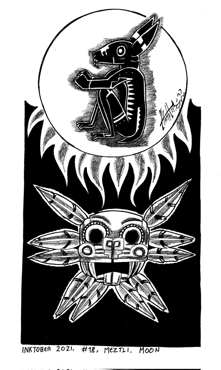 Inktober 2021, #18, "Meztli" Moon Meztli means moon in mexica language, the legend of the moon Bunny #inktober #inktober2021 #inktobermoon #deviantart #xolotlrex