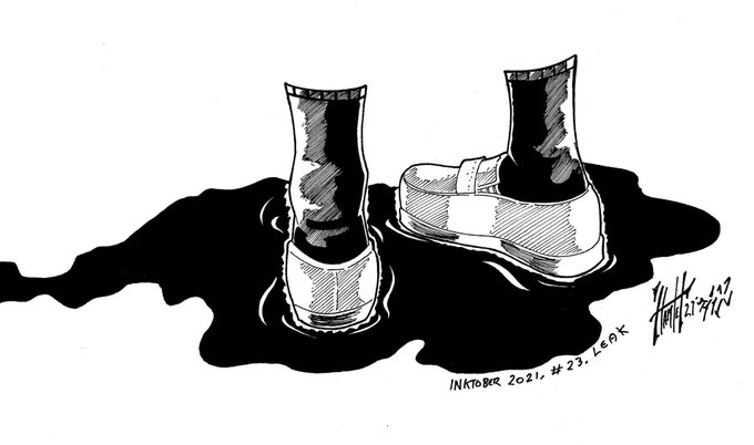 Inktober 2021, #23, Leak perhaps, someone hace serious problems. #inktober #inktober2021 #inktoberleak #deviantart #xolotlrex