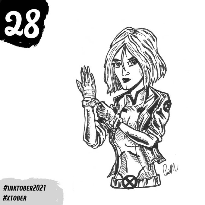 Dia 28 - Rogue ( Vampira ) dos Xmen #Inktober #inktober2021 #inktoberbrasil #xtober #rogue #vampira #xmen #ilustration #ilustracao #comics