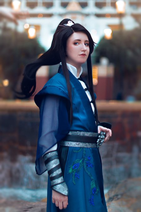A little peacock disciple 🦚 @sorairo_days was a trooper for shooting our Erha group even when I had no idea what was going on 😂 Thanks @wandererlila for the hair toss 😎 #erha #xuemeng #huskyandhiswhitecatshizun #二哈 #二哈和他的白猫师尊 #katsucon
