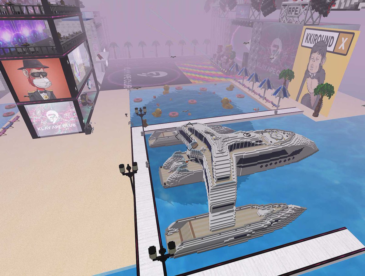 @cryptovoxels #voxel #voxelart #yacht #BAYC #KLAYAPE #apefollowape #Ukkikkifollow Ape yacht on @LUENA_H beach cryptovoxels.com/play?coords=NW…