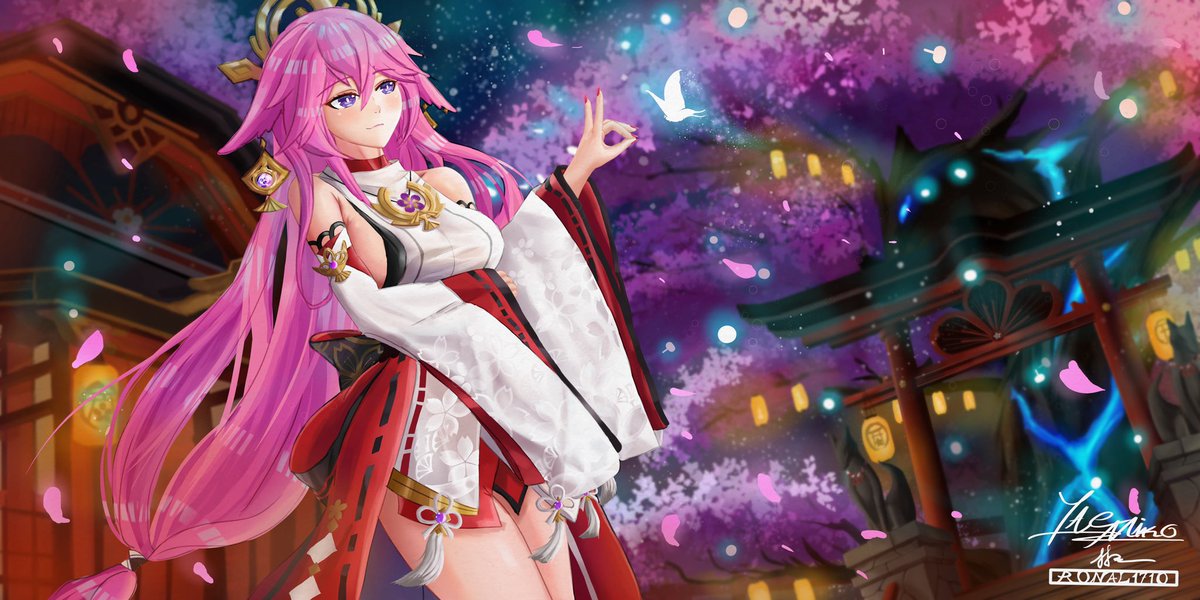 Repost happy birthday yae! I’m a bit late tho… #yaemiko #yaemikofanart #Yae_Miko #GenshinImpact #yaeartcontest #miko_Art #artistsontwitter