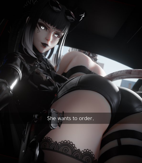 She wants to order. 🍟🍔 feat. @YanderaeVT 😍(done in blender3d 🖤) · #vtuber #vtuberuprising #yandrawn #vezoniart