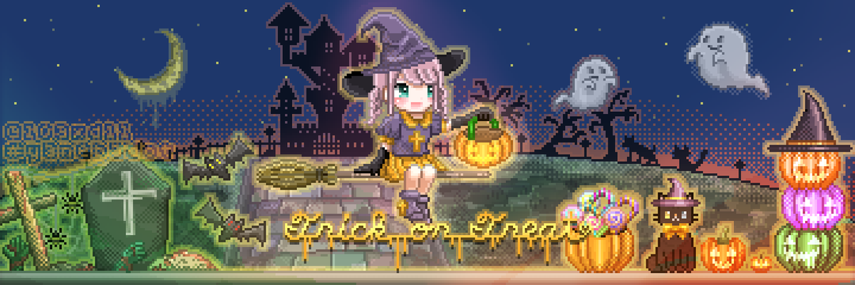 ハッピーハロウィンドット絵!今年もギリギリ間に合った~~!ギリギリセ~~~~フッ🧟 お菓子は常に欲しいです!!いたずらしないのでください!! #yanebadot #halloween2021 #ハロウィンイラスト