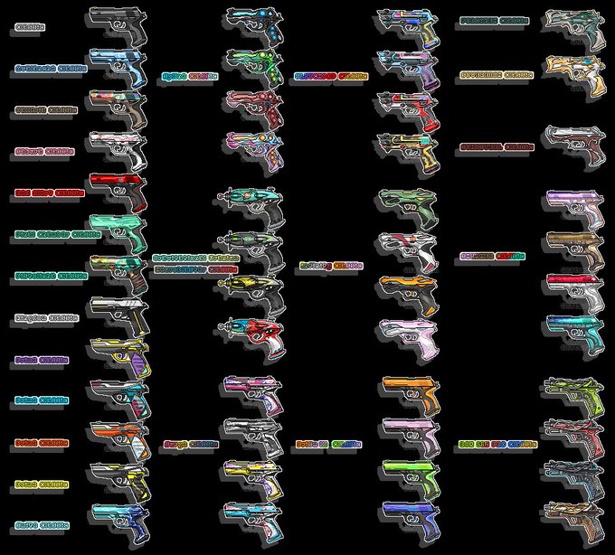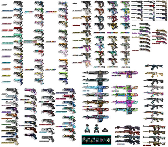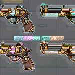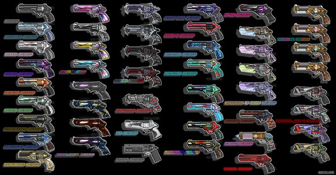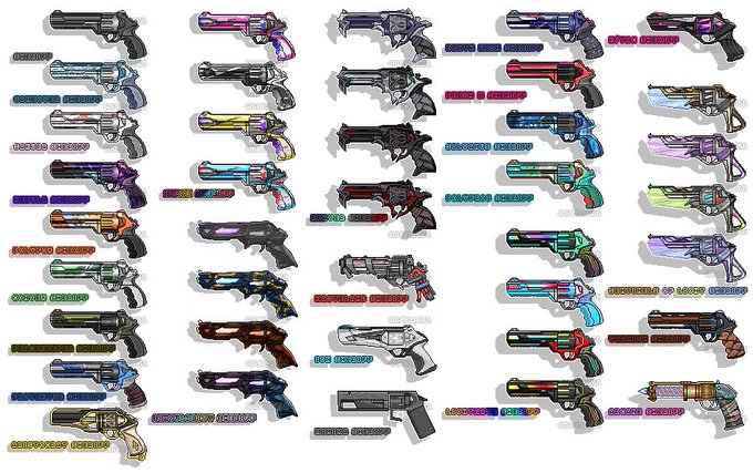 プロトコル781-Aシェリフとスキーマシェリフ追加しました!(右下あたり) 今まで描いたシェリフとまとめてみた! 久々に武器ドットぽちぽち楽しい #ドット絵 #VALORANT #ValorantArt #yanebadot