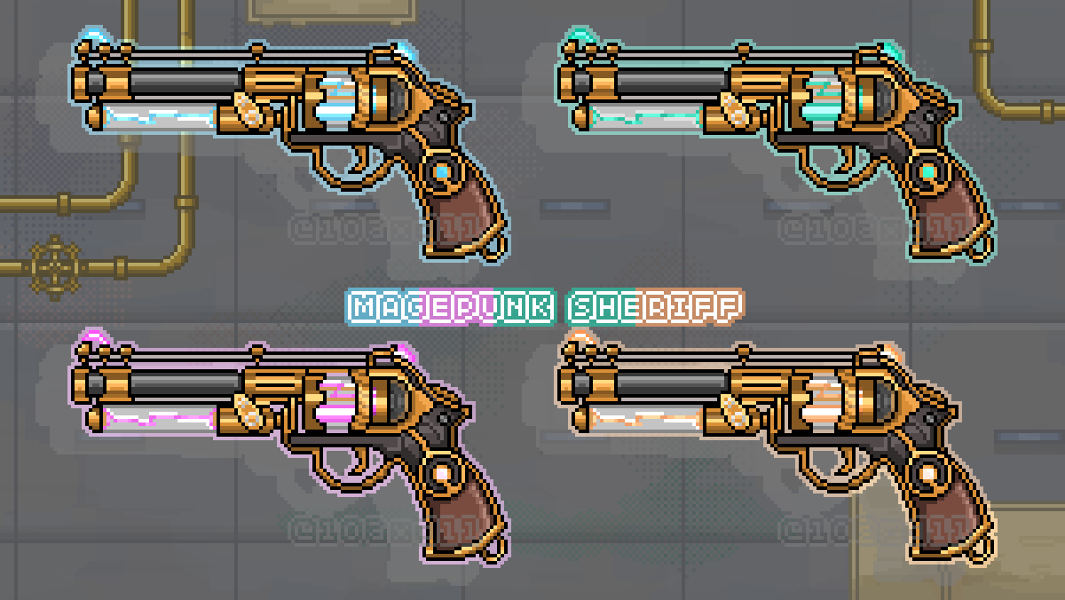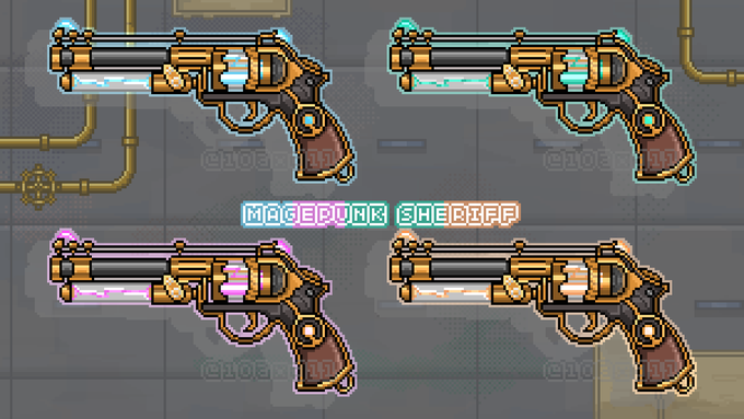 メイジパンクシェリフ描きました! 今回は背景も描いてみた~ ファントムとヴァンダル出てほしかった(;O;) 過去作はコチラ #ドット絵 #VALORANT #ValorantArt #yanebadot twitter.com/10axd11/status…