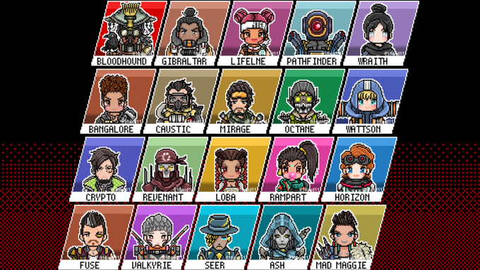 Apexのキャラ、今出てるのまで描いたよ~!ポチポチ #ドット絵 #pixelart #ApexLegendsFanart #yanebadot 最近Apexもちょくちょくしてる!楽しい!