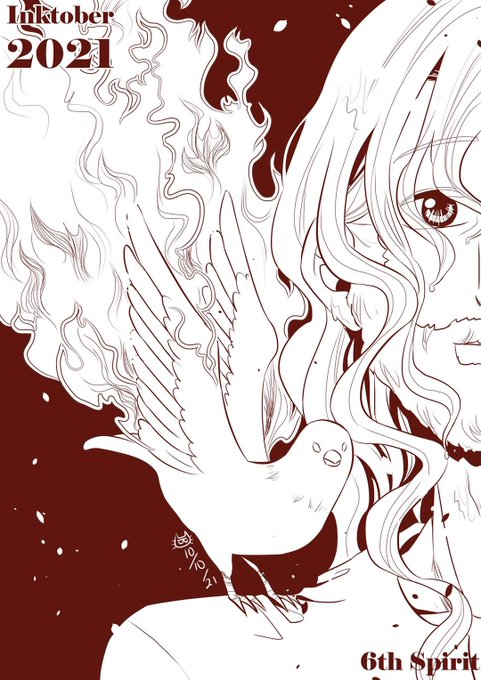 Inktober2021 6th Spirit 马太福音3: 11......他要用圣灵与火给你们施洗。 16耶稣受了洗,随即从水里上来。天忽然为他开了,他就看见神的灵,仿佛鸽子降下,落在他身上。 #YAN镜猫 #眼镜猫 #yanjingmao #Inktober #Inktober2021 #Spirit #HolySpirit #耶稣基督 #JESUS #fire #ClipStudioPaint #鸽子