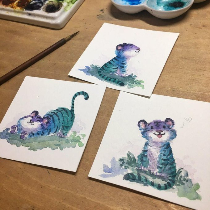 So much work to do..! Catching up on Patreon goodies this weekend: little blue tigers for my art card tier 🐯 #watercolor #illustration #tiger #yearofthetiger instagr.am/p/CabdNoFL-On/