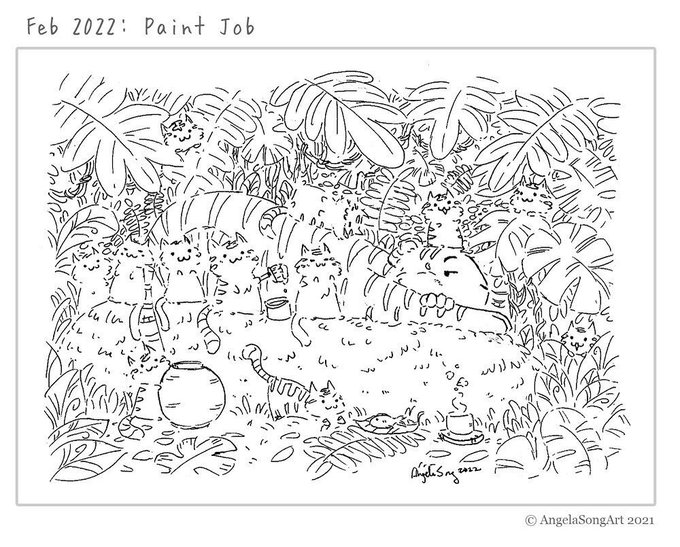 February coloring page for my lovely Patreon patrons 💙 (yes I goofed with the copyright year template 🤦🏻♀️) #yearofthetiger #cat #illustration instagr.am/p/Cak9QghveGk/