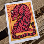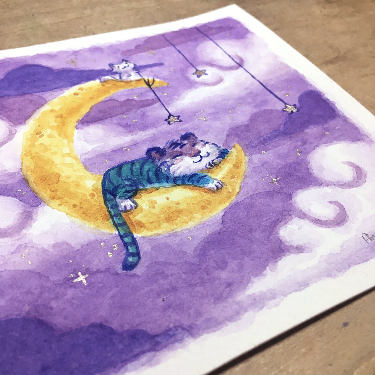 Tiger Moon painting is now available in my Ko-Fi shop! Ko-fi.com/angelasongart/… (link in profile). So happy with how this turned out, it’s so fun waggling this piece to see the shiny paint sparkle ✨ #yearofthetiger #watertiger #watercolor #illustration
