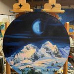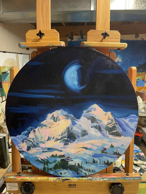 Added this oil on canvas painting titled “in the stillness of the night” to my online shop! This piece is 24” in diameter and is painted on a custom made canvas 🎨 For more info visit samanthawilliamschapelsky.shop/products/in-th… #yeg #yegart #revelstoke #BritishColumbia #mountains #ArtistOnTwitter