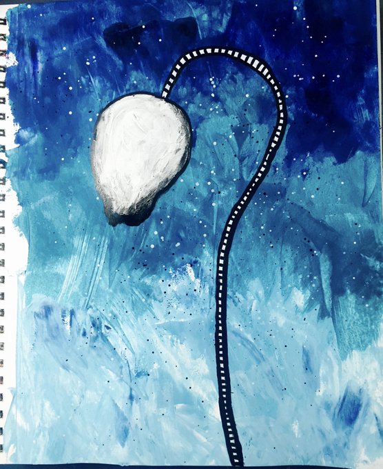 Happy Day 8 of #ArtAdventCalendar I’m feeling kinda blue today, so this wilting flower is a good representation of that mood. #art #artistsontwitter #yegart #blue