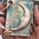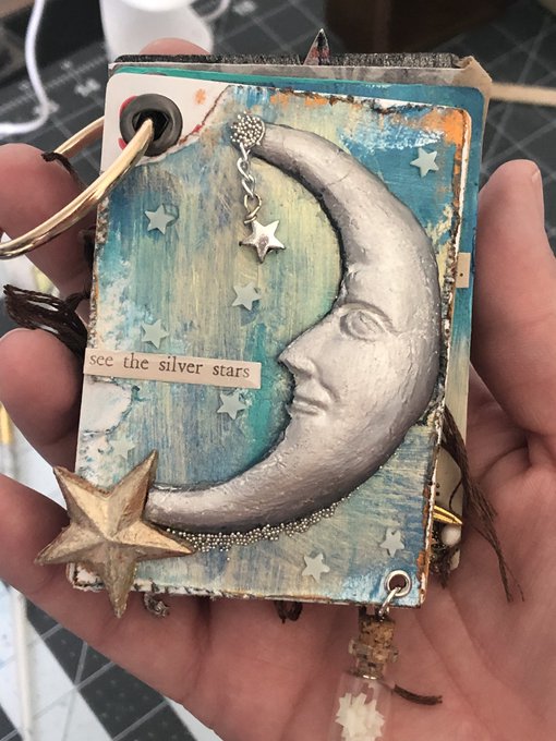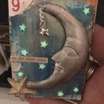 Happy Day 13 of #ArtAdventCalendar Today is another mixed media card from my weekly playing card project, “see the silver moon”. I love that it it has 3D elements, dangles and that it glows in the dark. #art #ArtistOnTwitter #mixedmedia #yegarts