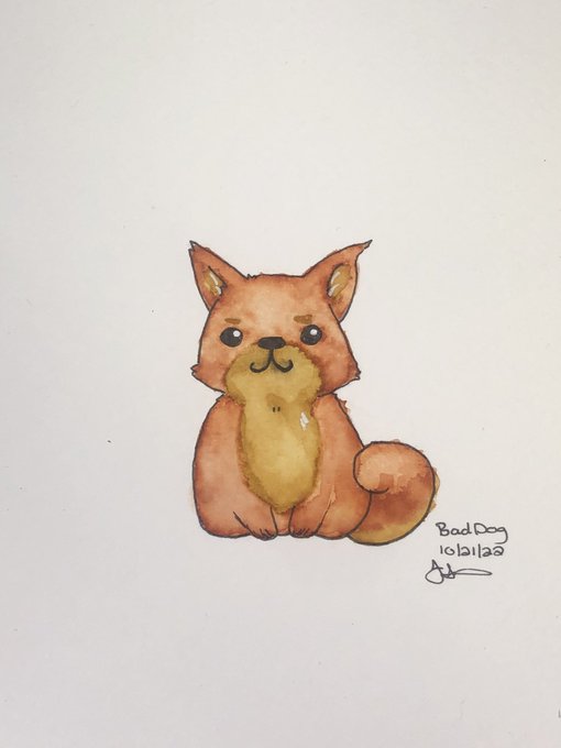 Happy Day 20 of #ArtAdventCalendar! Trying to cheer myself up this morning, enjoy this picture from #inktober2022 for the prompt, Bad Dog. Ink on watercolour paper #art #artistsontwitter #yegarts #dogsoftwitter #drawing