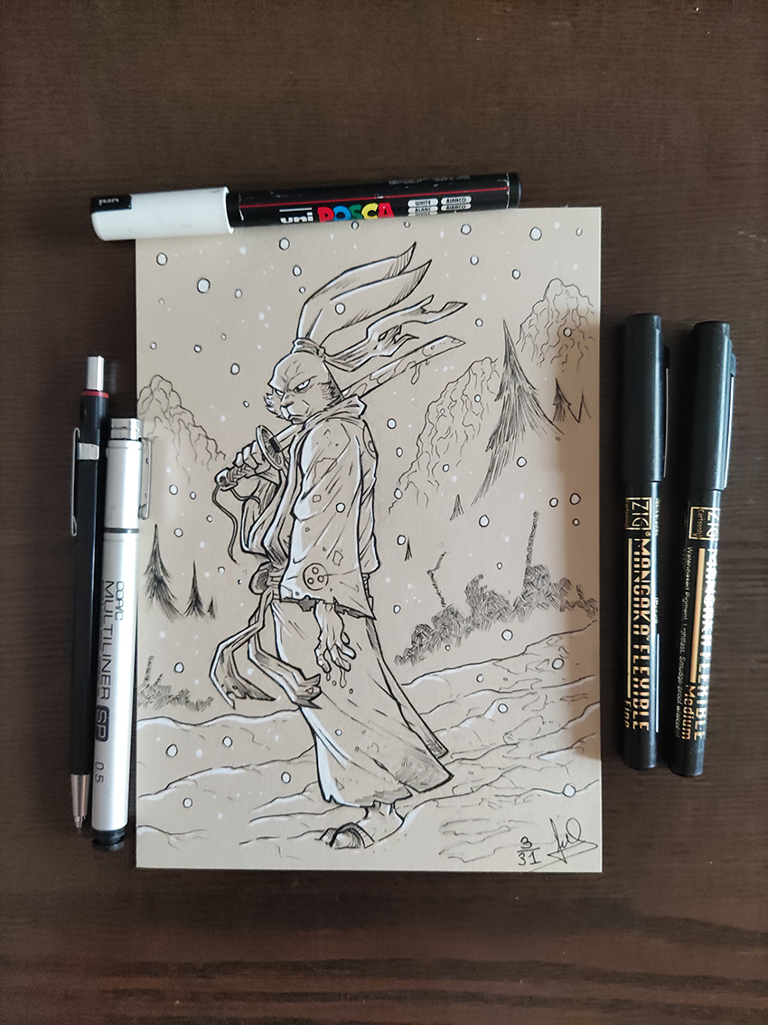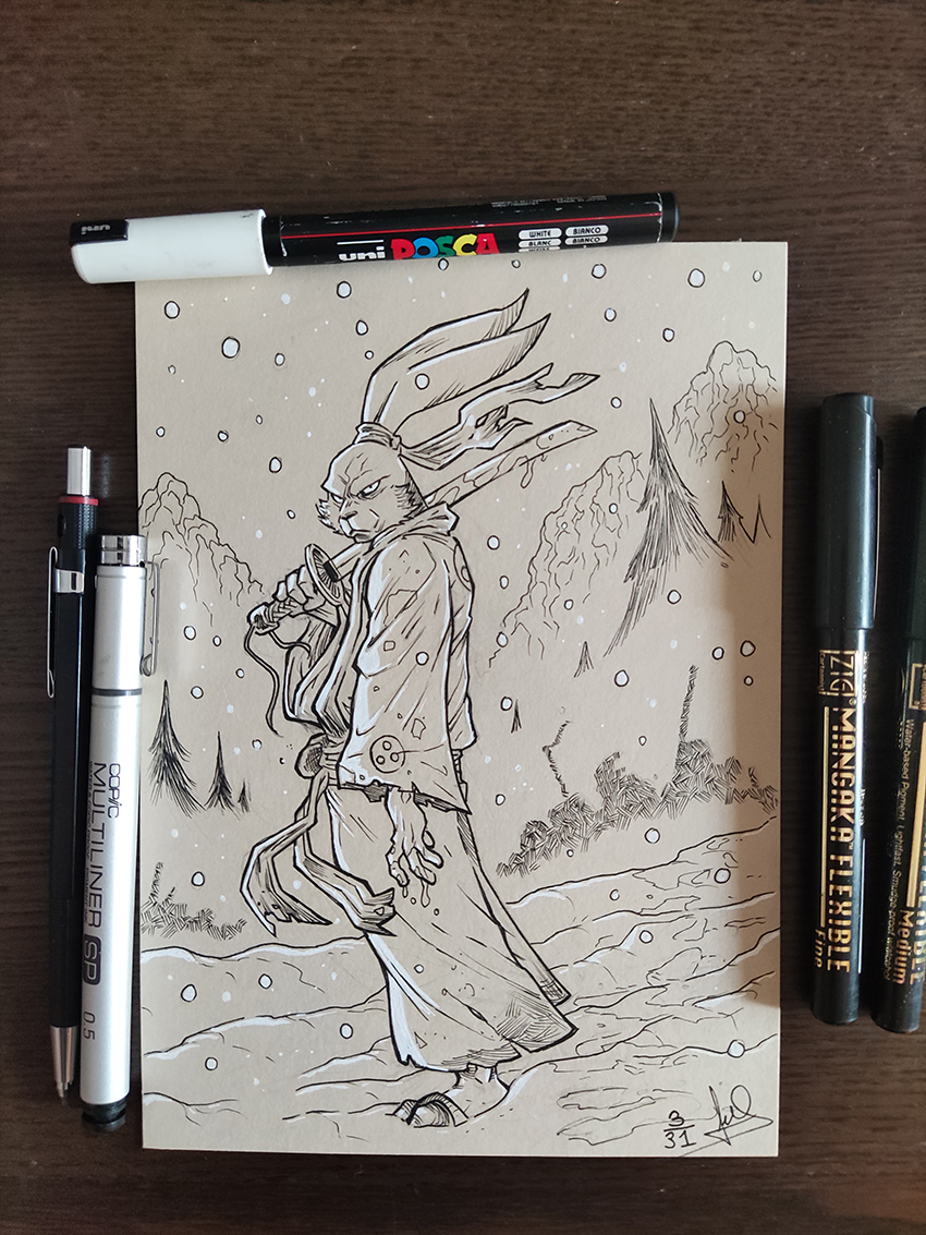 INKRAGETOBER DAY 03. USAGI YOJIMBO! Inks & posca on A5 PaintOn. Reservas por DM. #inktober #inktober22 #inktober2022 #inkragetober #inkragetober22 #art #comic #traditionalart #inks #posca #usagi #yojimbo #usagiyojimbo