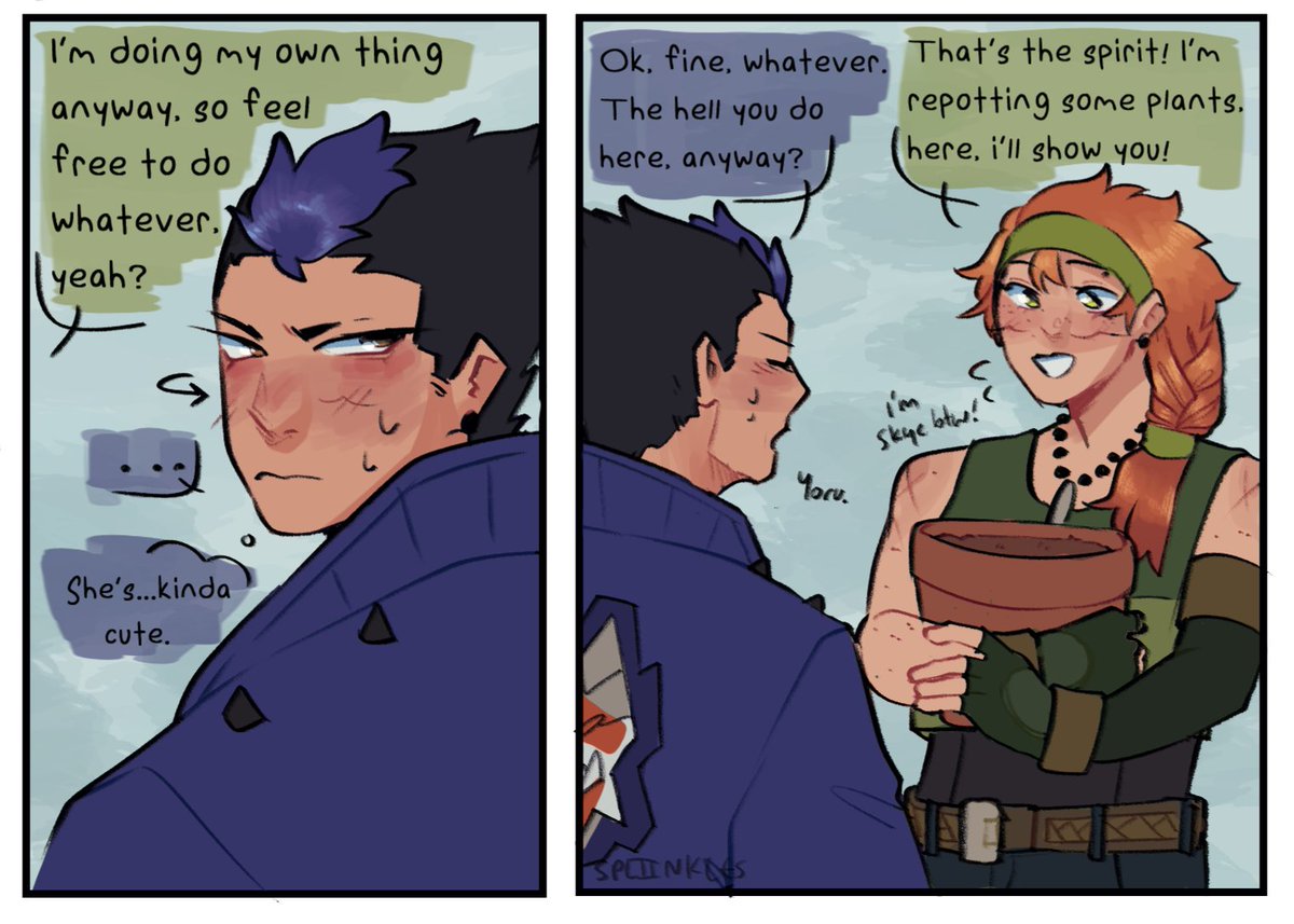She wanted to get a drink after skating Day 2 of Yokye Week :3 #valorant #ValorantArt #VALORANTfanart #yoru #skye #yokye #yokyeweek #art #fanart #digitalart #RiotGames