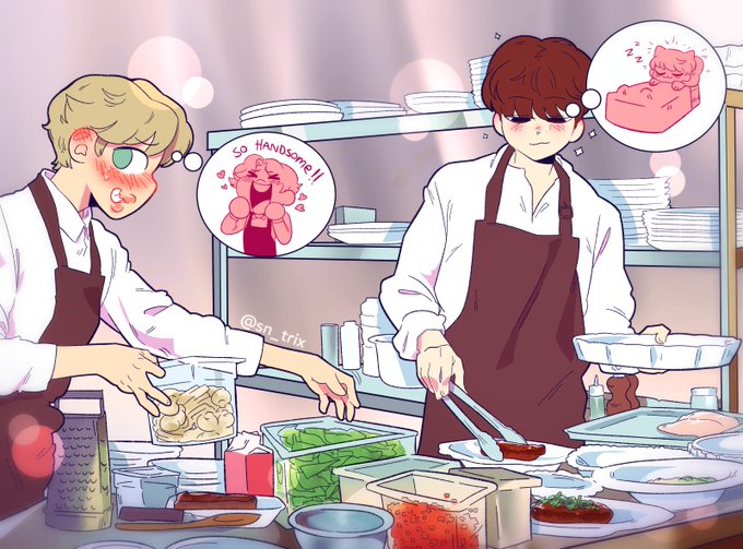 (Restaurant/chefs) Head empty. Only workplace crushes and sleep 👨🍳👨🍳 #yoonminfest #ymfest22_d4 #yoonminau #JIMIN #YOONGI