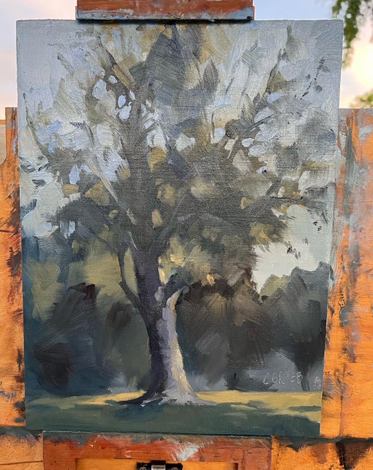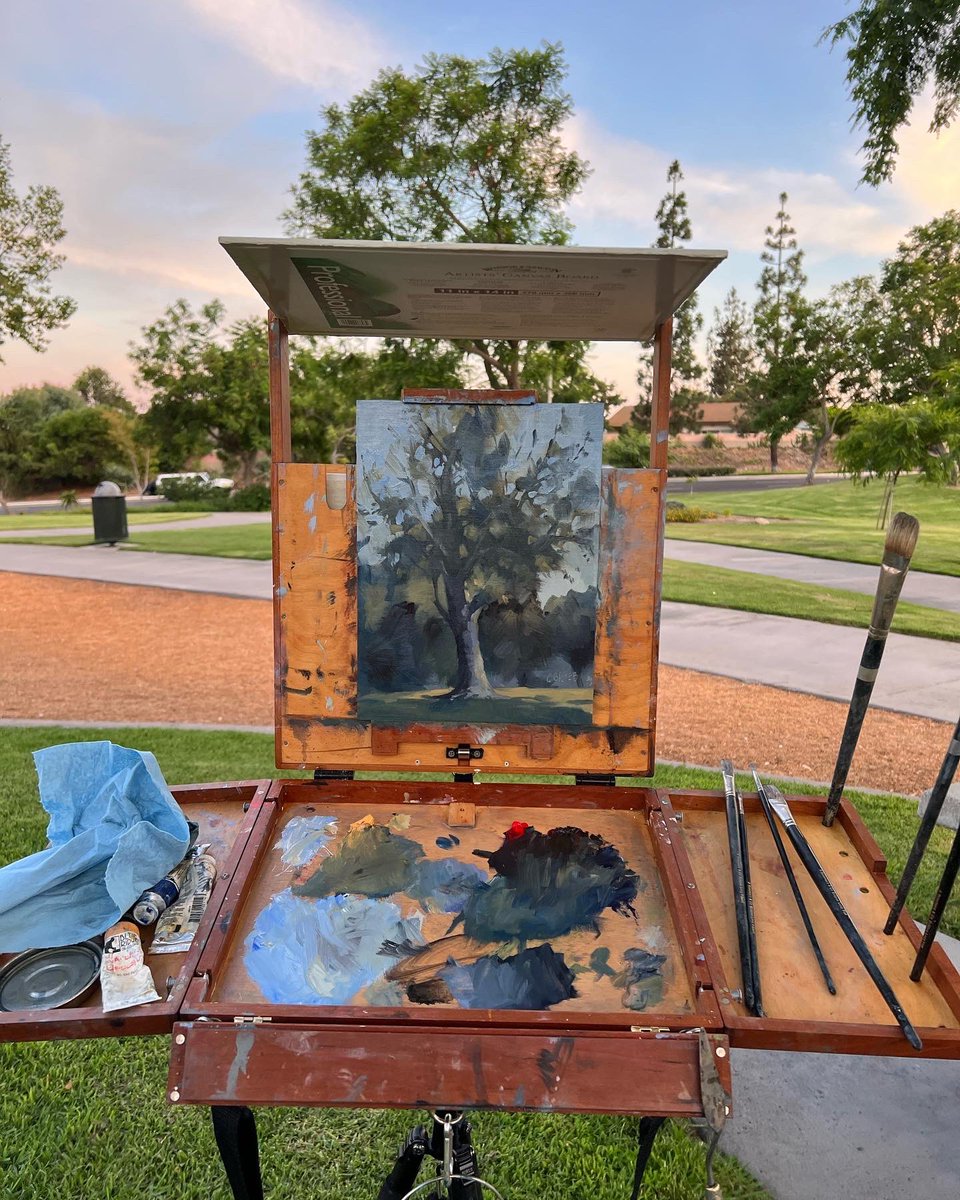 Plein air painting with @wendy_grieb this evening! #tree #landscapepainting #pleinairpainting #allaprima #oilpainting #havingfun #yorbalinda