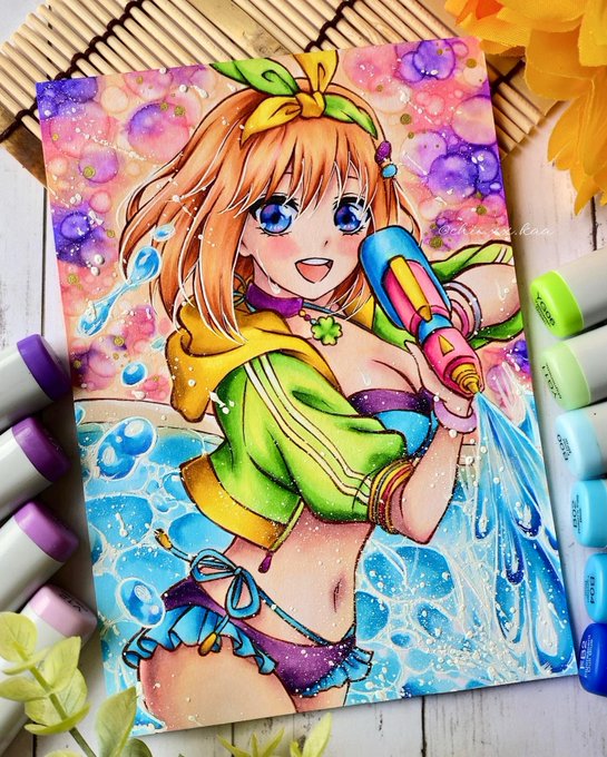 四葉🍀💚 夏イラストまだまだ続きます〜(*^o^ฅ*)🌞✨ #五等分の花嫁 #春場ねぎ 先生#中野四葉 #四葉 #模写 #コピックペーパー #画学紙 #コピック #絵描きさんと繋がりたい #thequintessentialquintuplets #gotoubunnohanayome #negiharuba #yotsubanakano #yotsuba #copic