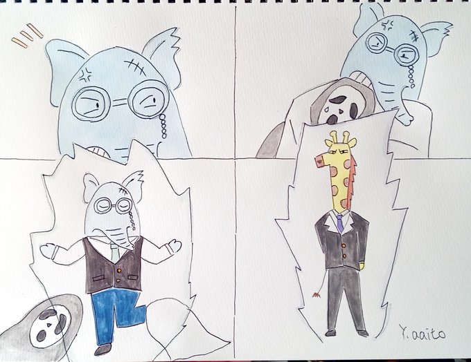 恥ずかしいので脱ぎました。 次回 ゾウvsドラゴン・ポー #イラスト #art #illustraion #絵描きさんと繋がりたい #漫画が読めるハッシュタグ #絵柄が好みって人にフォローされたい #イラスト好きさんと繋がりたい #yuaaito #Barパオーム