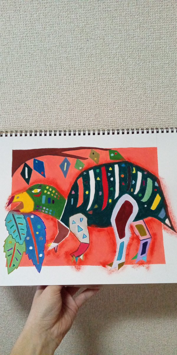 フクイサウルスと太古の草 完成! #絵画 #art #illustration #絵描きさんと繋がりたい #現代作家の環 #美術ネットワーク #みんなで楽しむTwitter展覧会 #芸術の輪 #yuaaito
