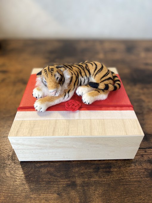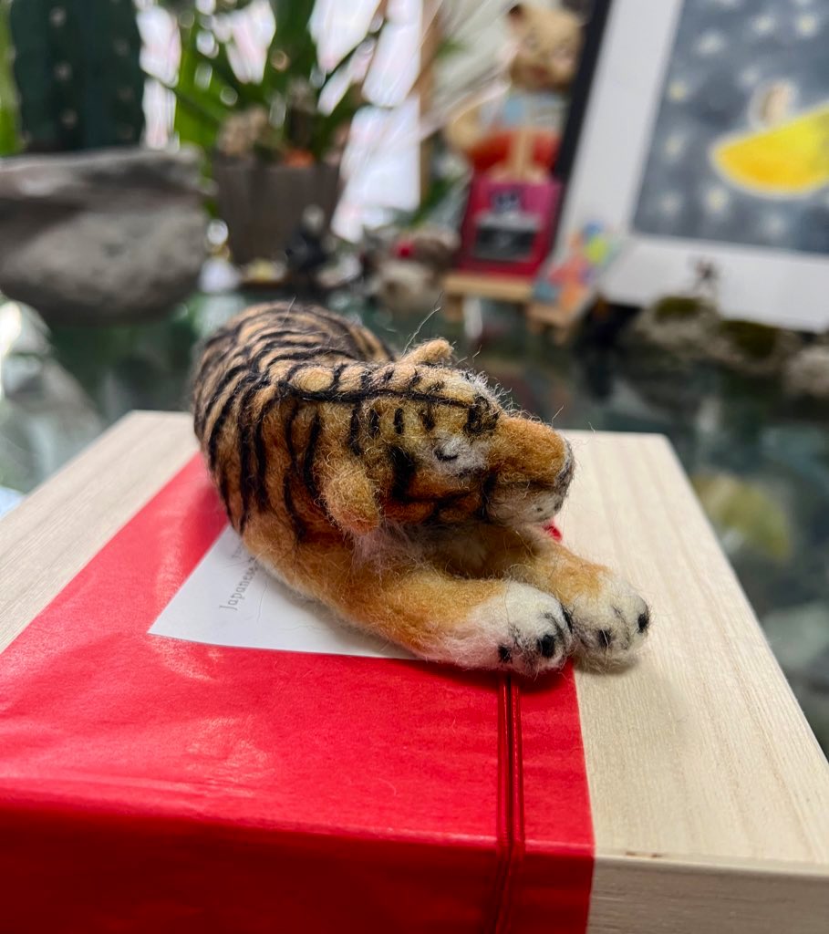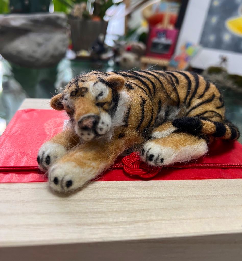 羊毛フェルトの虎、正式バージョン!yucoco cafeのキットで作りました。マニュアルもわかりやすくて、こんな難しそうなのに、なんとか作れたよ〜。 #羊毛フェルト #虎年 #yucococafe