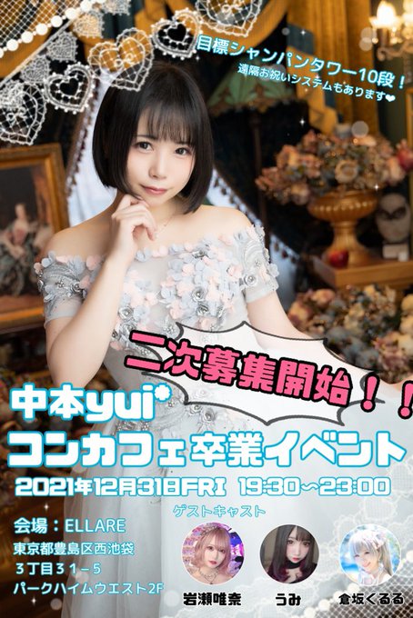 12月31日開催 #中本yuiコンカフェ店員卒業イベント 二次募集開始しました🎊 大晦日まだ会いてるよ!って方ぜひyui*の卒業見届けに来てくださいっ💓 シャンパンタワー企画もまだまだ募集中です! 遠隔お祝いシステムもあります🥰 ▼申込&詳細▼ passmarket.yahoo.co.jp/event/show/det… 締切12/22 23:59迄 #yui道楽