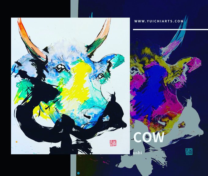 牛(Cow) 🐂 and. (graphic ver) Production date : 2020. December Website yuichiarts.com Instagram instagram.com/you_one_88/ #artist #artistic #yuichi #interiordesign #artwork🎨 #art🎨 #kanji #デジタルアート #grapicdesigner #watercolor #水彩画 #水彩画アート