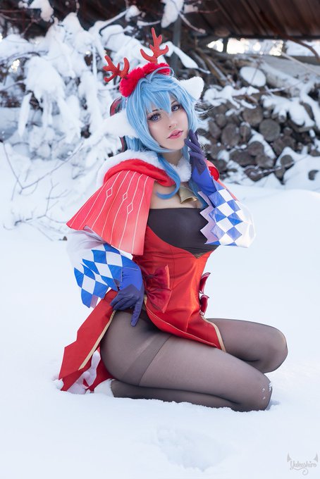 I cosplayed #christmas #ganyu from official #genshinimpact artwork! ❤️ I hope you'll like another version of #cocogoat by yours truly! 🎄 #cosplay #yukeshiro #XmasShiro #yukelegs #pantyhose #コスプレ #原神