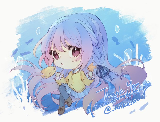 blue is also one of my favourite colours hehe 💙🐟 more colourized sketch comms but this time a chibi uwu #yukiko_sketches