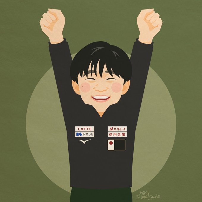 去年の今頃描いた #北京五輪 #男子シングル メダリスト #イラスト 集合写真はマスク着けていたので、外したらこうかな? というイメージで #nathanchen #figureskating #figureskater #フィギュアスケートイラスト #北京オリンピック2022 #Beijing2022 #ネイサンチェン #shomauno #yumakagiyama