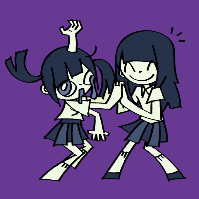 hmmm dunno if i prefer purble bg or white bg?. anyways radioactive monochromatic girls monoko and monoe #yumenikki
