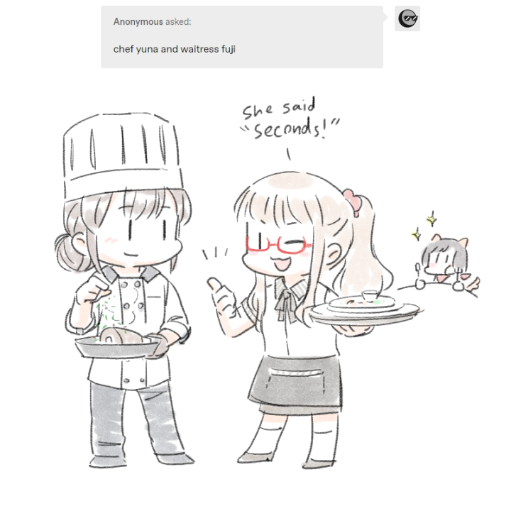 (1) still, getting their new cg in FC is pretty nice (seems like not a request but I draw them anyway) (2) reminded me of certain part from setting tweets lion-sensei.tumblr.com/post/149441515… (3) Did I draw this post before? > Yes. Will I draw them again? > YES! (4) 😋🍽 #yuritopia10th