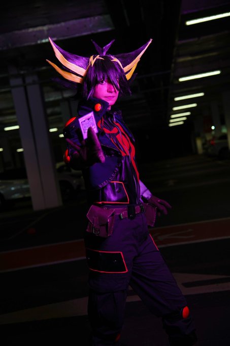I love the cyberpunk aesthetic of 5ds a lot so we were trying to emulate that with some funky lighting! Photo: @matthewmccc #yugioh #yugioh5ds #cosplay #yugiohcosplay #yugioh5dscosplay #5ds #5dscosplay #yuseifudo #yuseifudocosplay #yusei #yuseicosplay