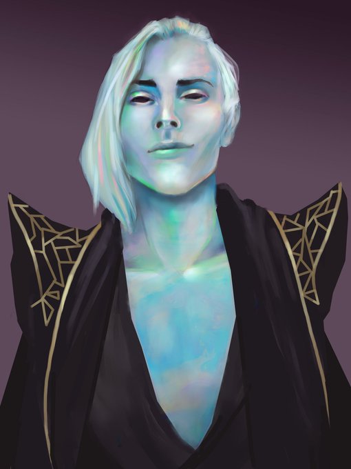 Also drew another version of this wonderful chaos fey person 💙💙💙 I just wish the camera&scanner were able to really capture the metallic water colours. #CriticalRole #CriticalRoleArt #criticalrolefanart #YuSuffiad twitter.com/bookydragons/s…