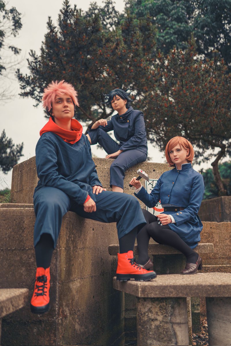 First shots from our #JujutsuKaisen shoot the other day! 😍 Yuji - beans.cosplay (IG) Megumi - @Praetorna Nobara - meeee Photo - erich3D (IG) #cosplay #yujiitadori #megumifushiguro #nobarakugisaki #anime #yvr