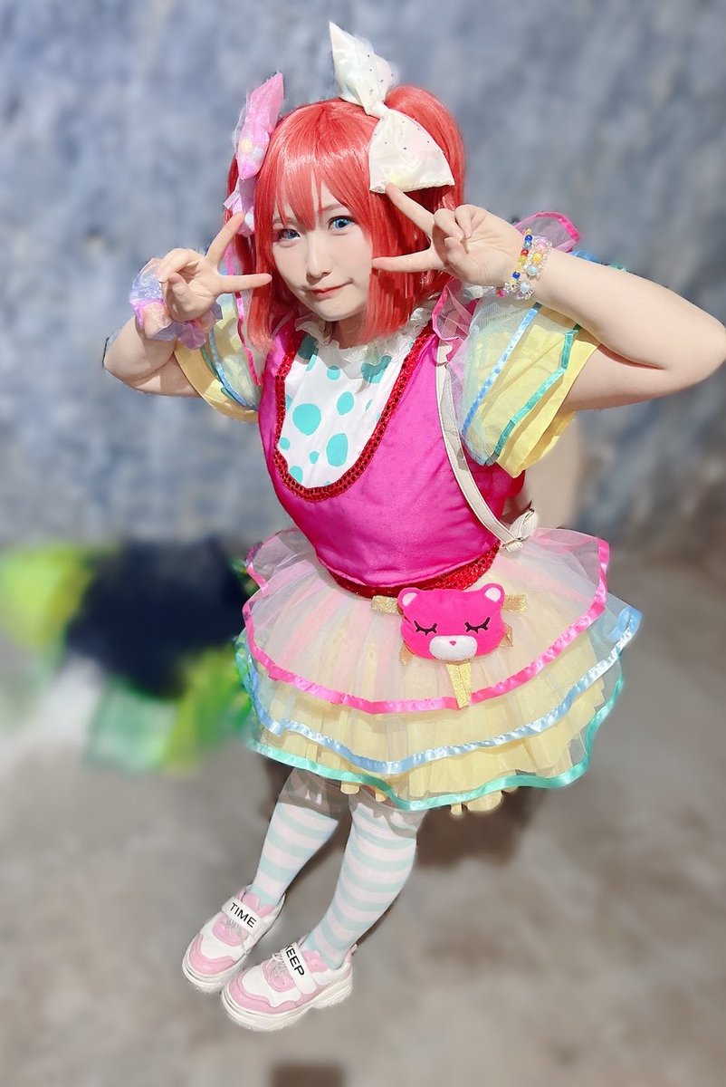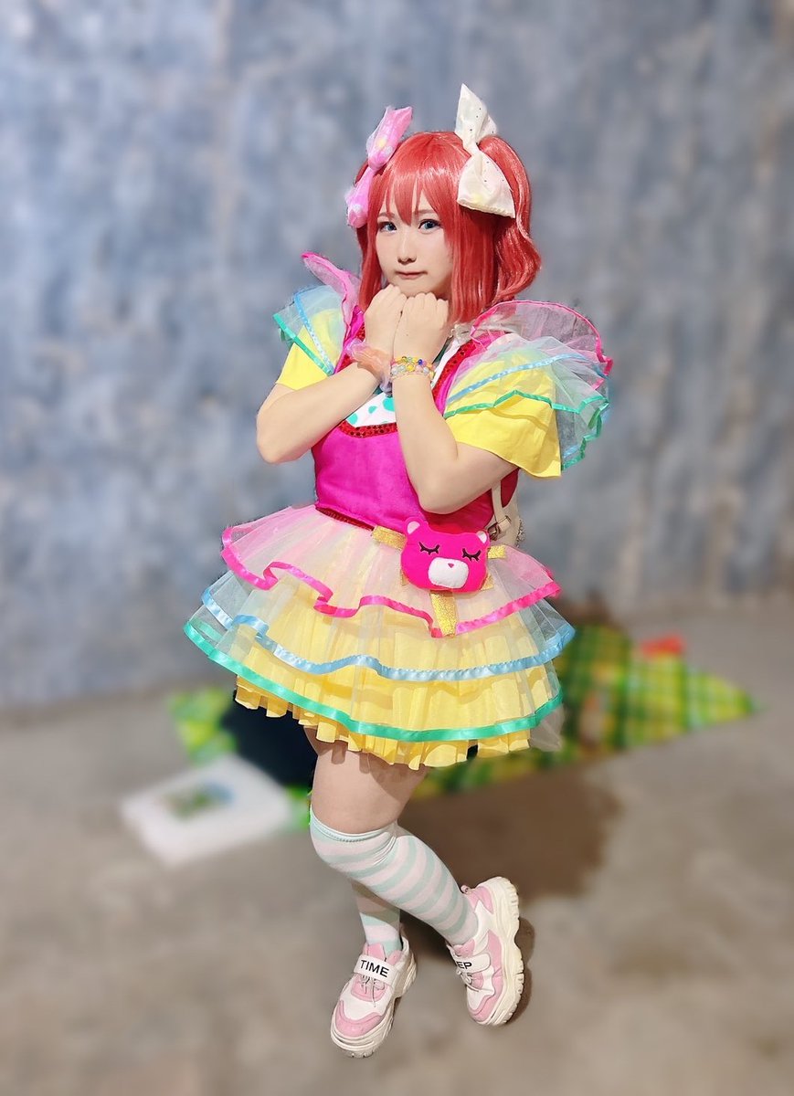 ⚠️cos. ラブライブ!サンシャイン!! 💖黒澤ルビィ🍭 コットンキャンディーえいえいおー! 衣装手作りしました❣️ 衣装タグ ▶︎ #yzpcostume 腰のくまぬい制作 さのみ🧸 photo ちかどっとこむ💙