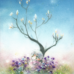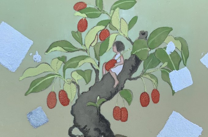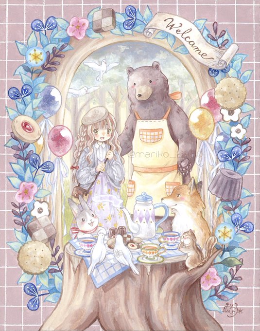 #ZEROTEN2022東京作品解説 #ZEROTEN2022 左の作品の中で飛んでいる鳥は羽に包帯を巻いています。 数日前、自宅付近で怪我をしているのを少女が見つけ手当をしてあげました。 その後、鳥の住む森から「仲間の鳥を助けてくれてありがとう!お礼に森のお茶会へ招待するよ」という招待状が届きました。→