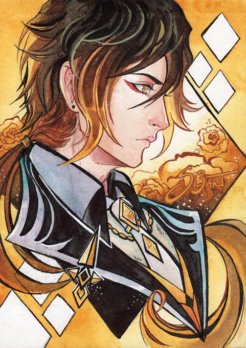 Happy belated birthday to Zhongli, sorry for the missing details bcs I'm in a serious artblock rn #zhongli #GenshinImpact #genshinimpactfanart #イラスト #原神 #原神イラスト #zhonglifanart #zhonglibirthday2021