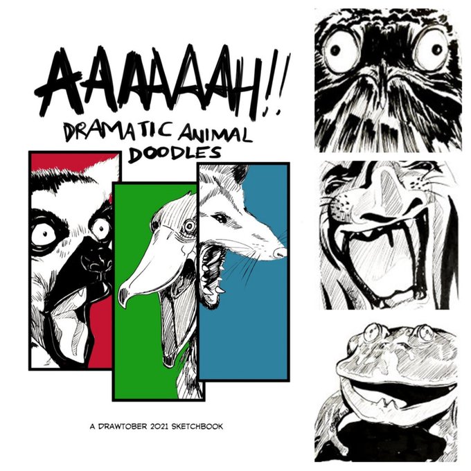 "This is literally a book of moods" ~ MCM Birmingham customer ~ "AAAAAAH!! Dramatic Animal Doodles", my 2021 #Drawtober sketchbook is available on Etsy and Ko-fi now. Hand printed, bound and trimmed and, for a bit extra, can include a sketch. Links in reply. #animalart #zines