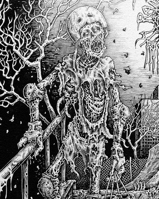 Day 11: Zombie “They’re Back From the Grave and Ready to Party” is a god tier tagline. #ZombieArt #TheReturnOfTheLivingDead #Inktober