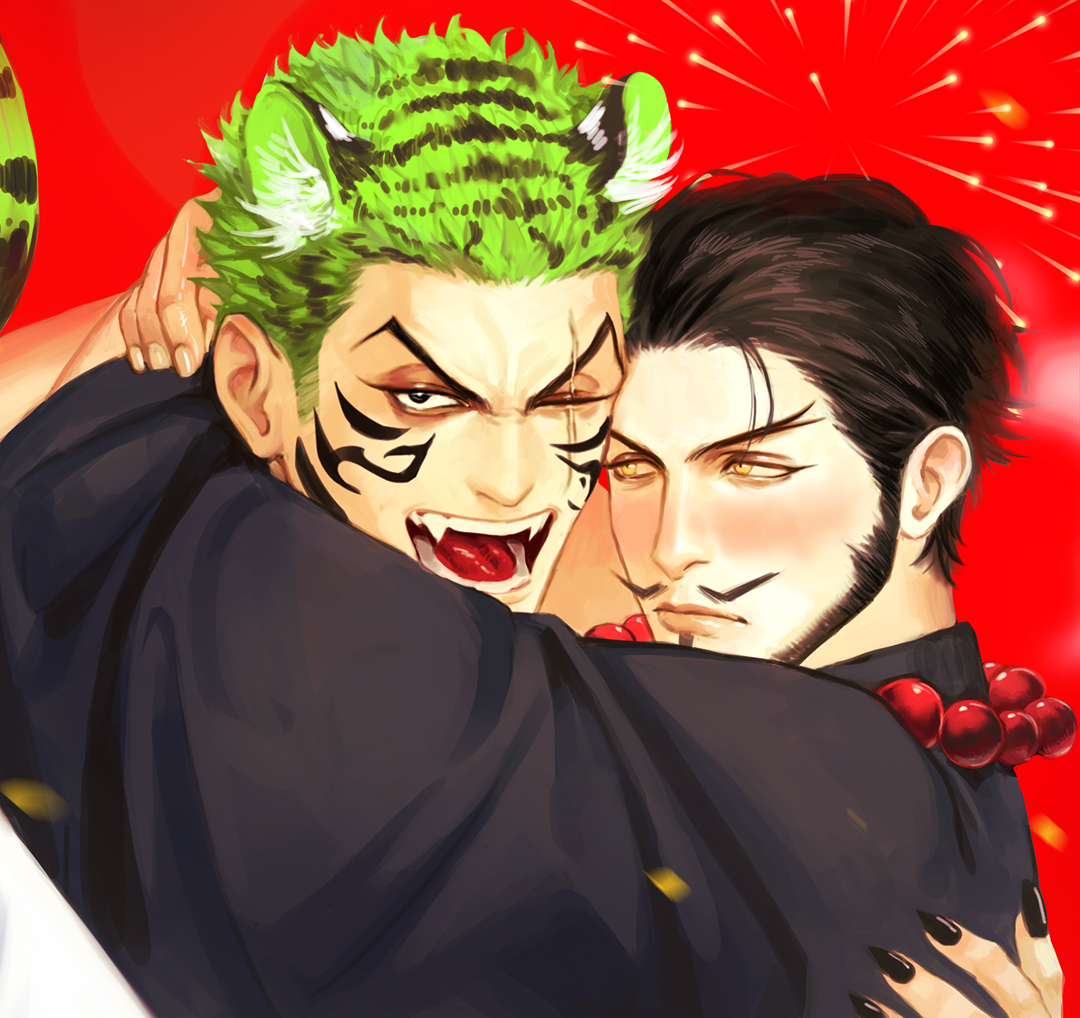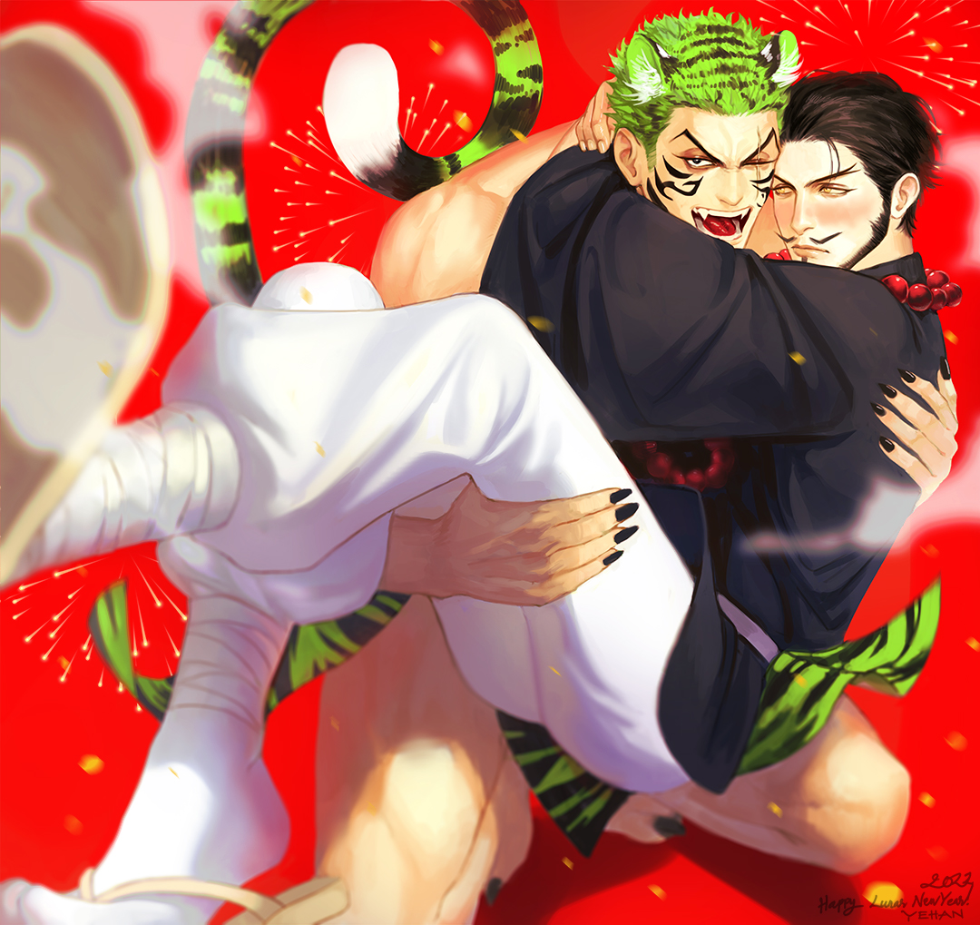 [Tiger x Monk] 🎉HAPPY LUNAR NEW YEAR EVERYONE!!!🎉 I really enjoy drawing this piece especially Mihawk's expression 😤 Alright enough with the fanarts, now I'll get back to my wips 😢 #zoroxmihawk #onepieceyaoi #FANART #onepiece #yaoi #bl #boyslove #zorororonoa #mihawkdracule